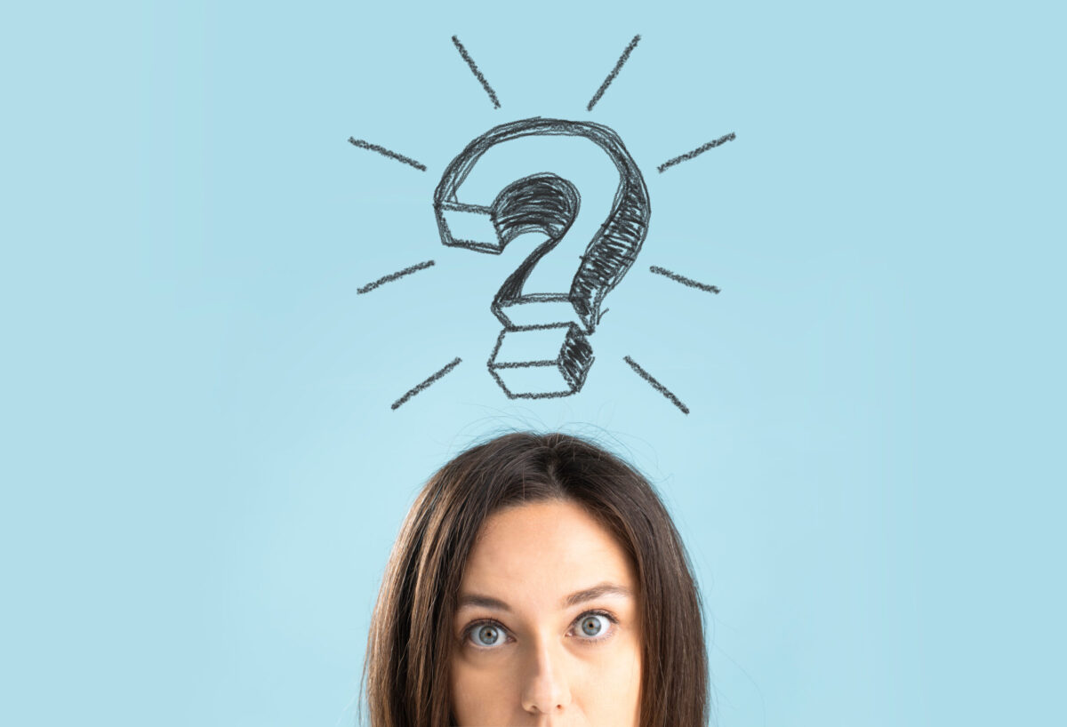 Confused young woman and a big question mark